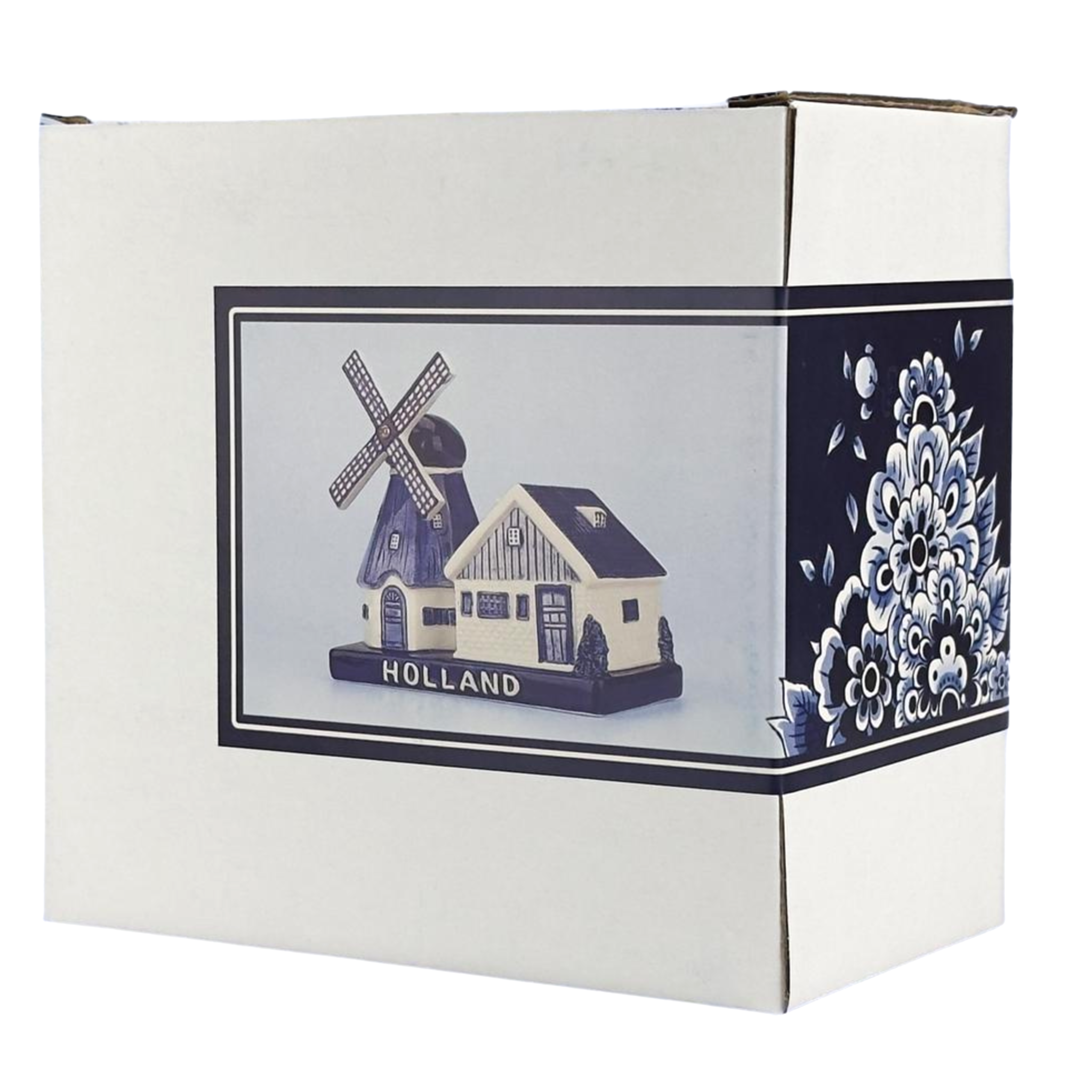 The mill is shipped in a sturdy, decorated gift box, making it a perfect gift for lovers of typical Dutch souvenirs or design.