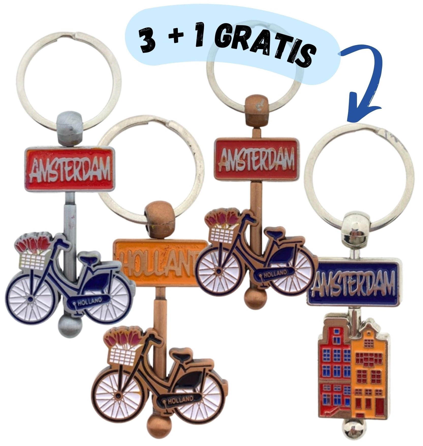 Set of 4 key rings - Bicycles and Amsterdam canal houses.
