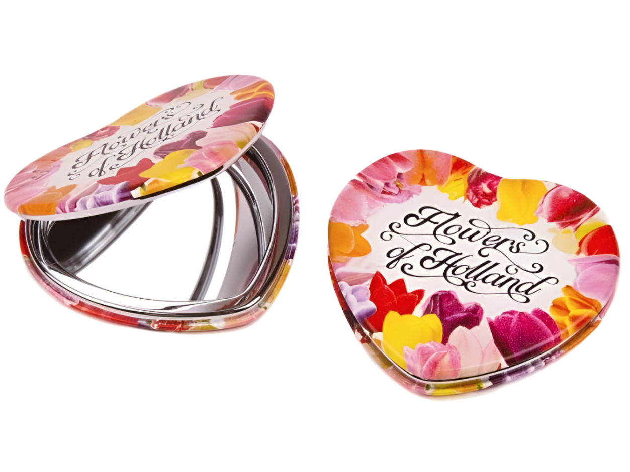 Heart-shaped duo mirror | Mirror box with magnetic closureWith a normal and a magnifying mirror