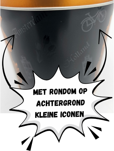 The tulip-decorated lid and subtle Dutch icons in light shades around the tin give it a refined, Amsterdam look.