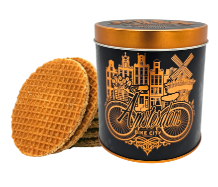 The Stroopwafels in black Amsterdam tin are the perfect gift or a delicious treat for any occasion.