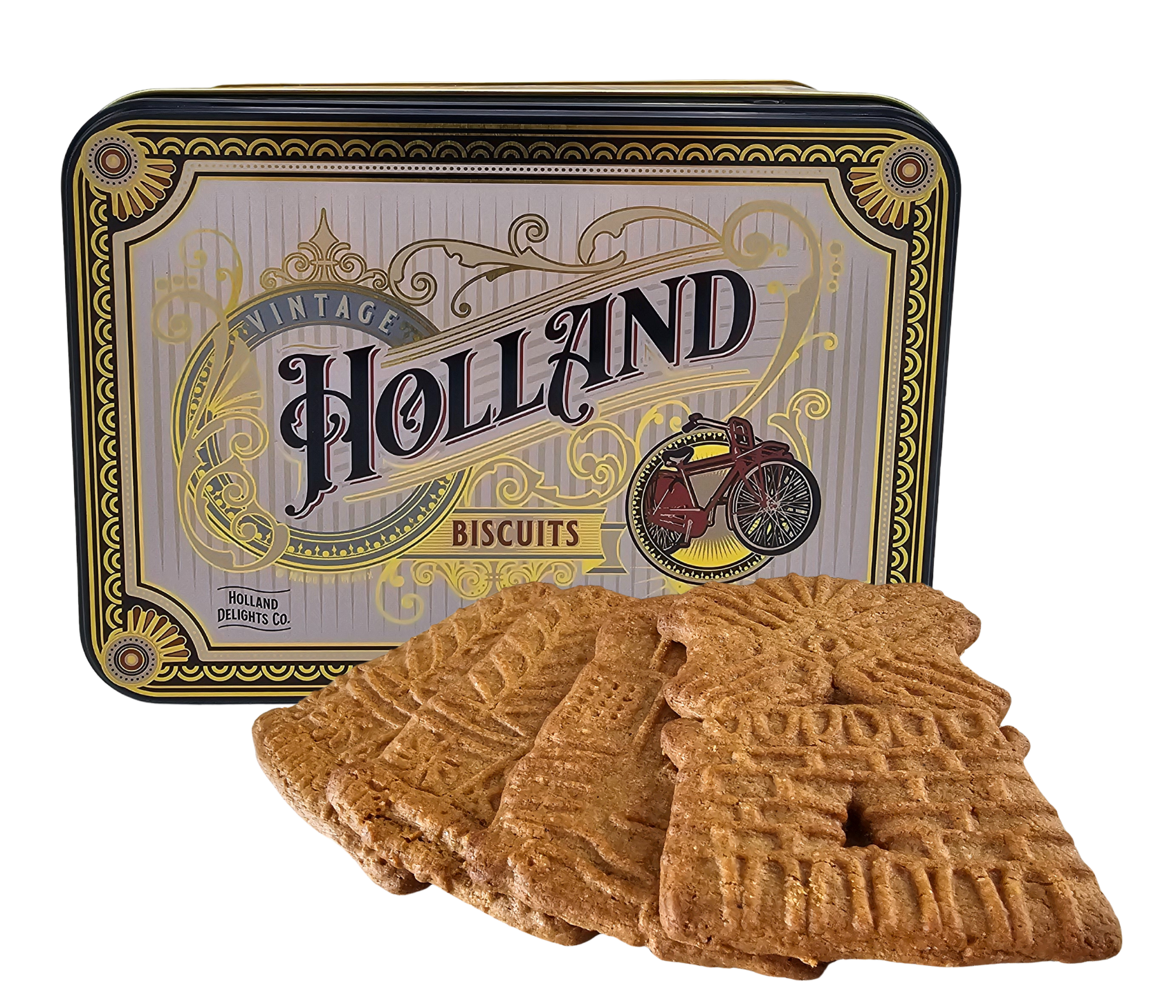 A stunningly beautiful tin filled with delicious speculaas. Large mill speculaas cookies, made to order. A commercial-free gift tin for endless use. No more half-packs of cookies that you throw away because they're actually no longer tasty.