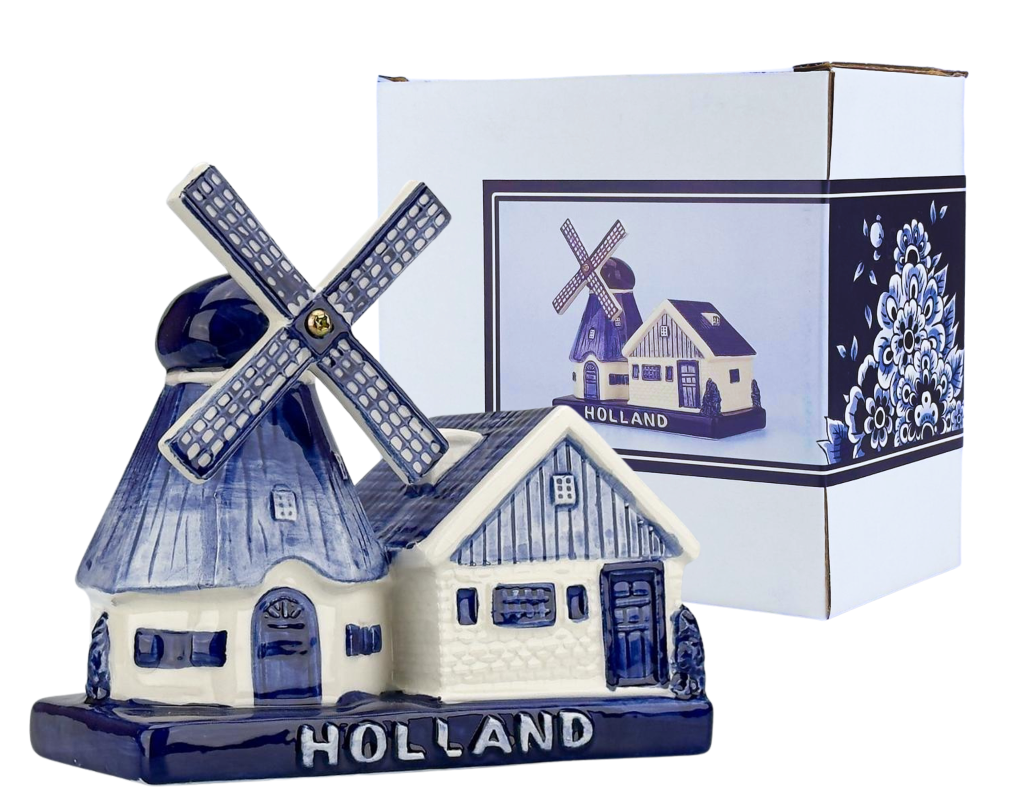 The mill is shipped in a sturdy, decorated gift box, making it a perfect gift for lovers of typical Dutch souvenirs or design.