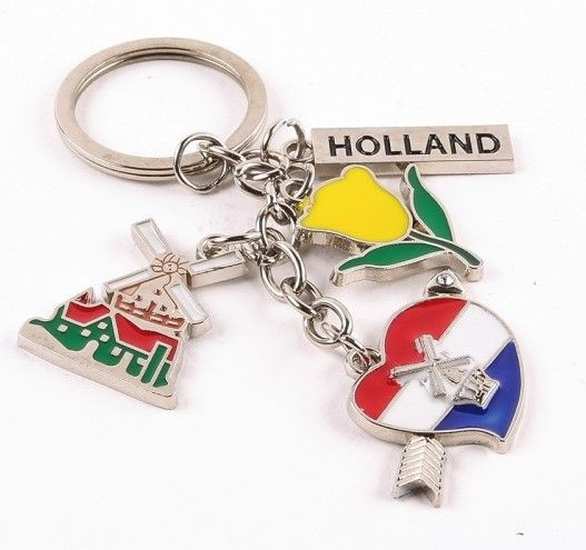 Key Charms Silver Mill * * Heart (I love Holland) * Yellow Tulip * Text-Taf Holland Ring with strong chain