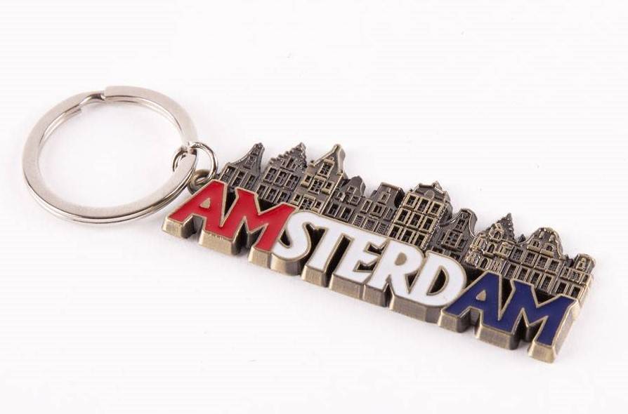 Key ring canal Amsterdam Canal belt on letters bronze in Red, White and Blue. size 6 cm