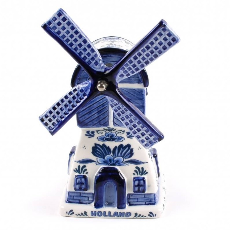 Delft Blue Musical Mill – (20 cm) Bring the timeless atmosphere of the Dutch landscape into your home with this beautiful Delft Blue water windmill. Not only a feast for the eyes, but also a delight for the ears thanks to the built-in music mechanism.