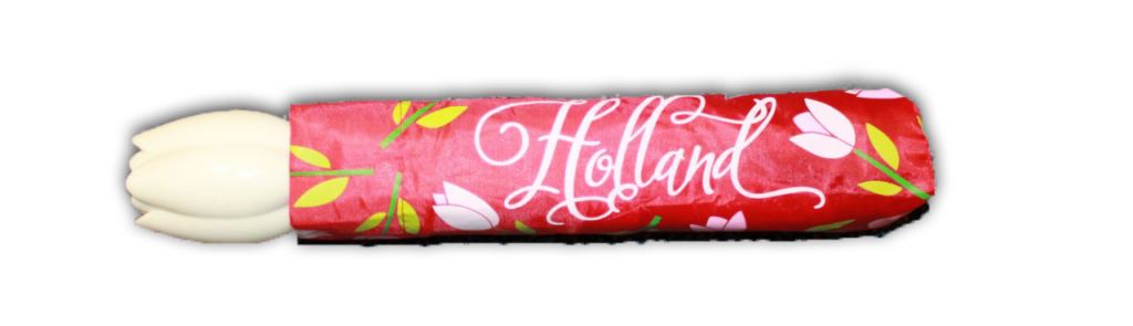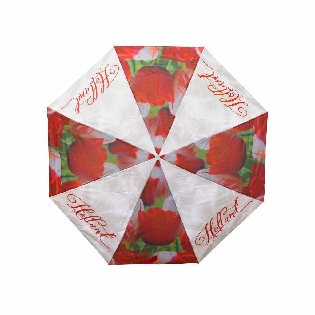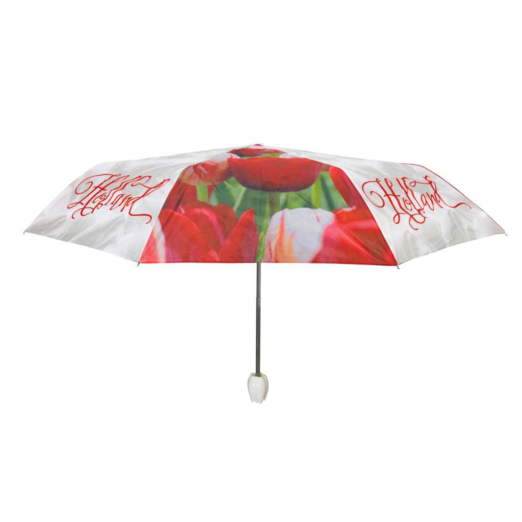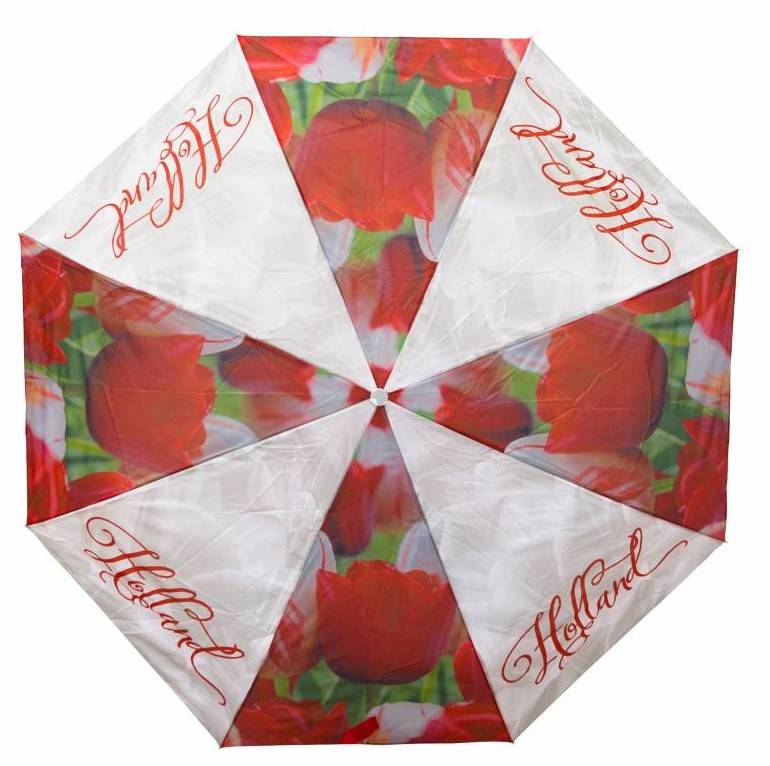 This umbrella foldable, so is very useful. White -Red in color and decorated with Dutch tulips.