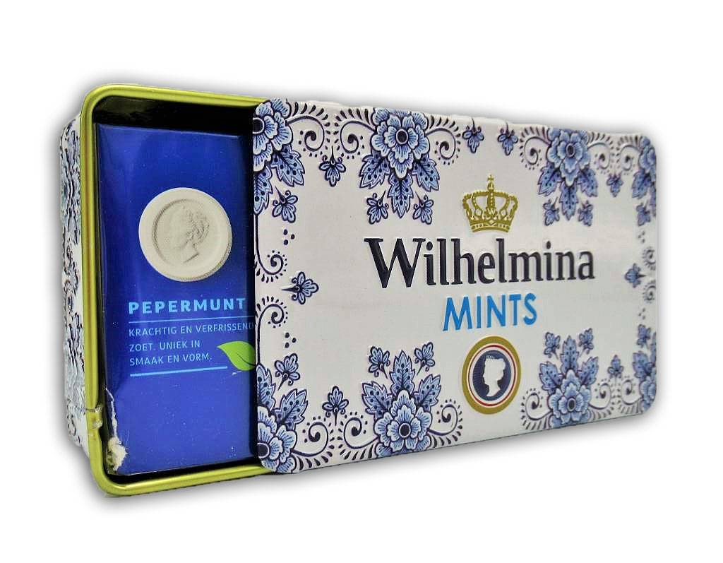 Wilhelmina Peppermint In handy storage tin, with sliding lid. Embossing flower motif and the familiar Fortuin logo. Content 100 grams of Wilhelmina peppermint. • Wilhelminapepermint was developed in 1892 by the fitma: Fortuin to ...