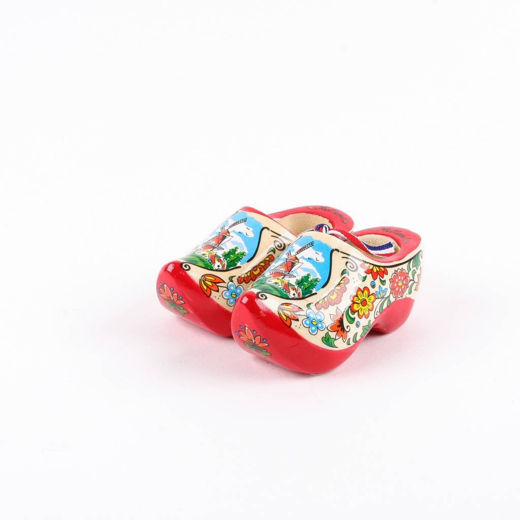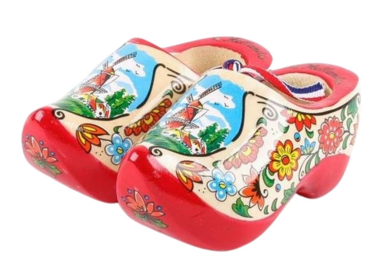 Decorated with flowers and a mill view.The clogs have Red, White, Blue ribbon.