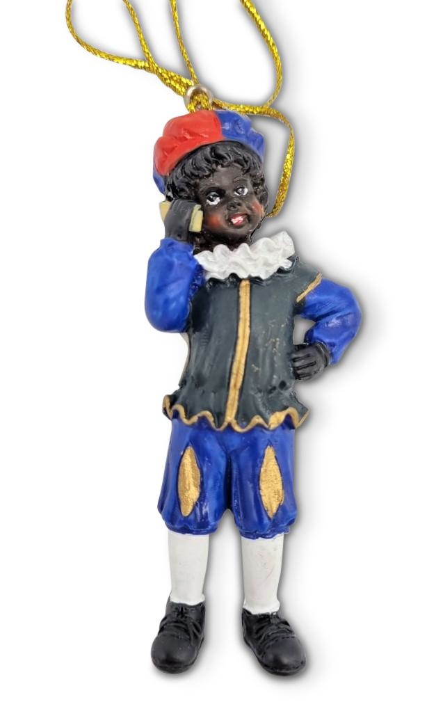 Black Pete with I-Phone Made of polystone. Height 8 cm. Fitted with gold hanging wire.