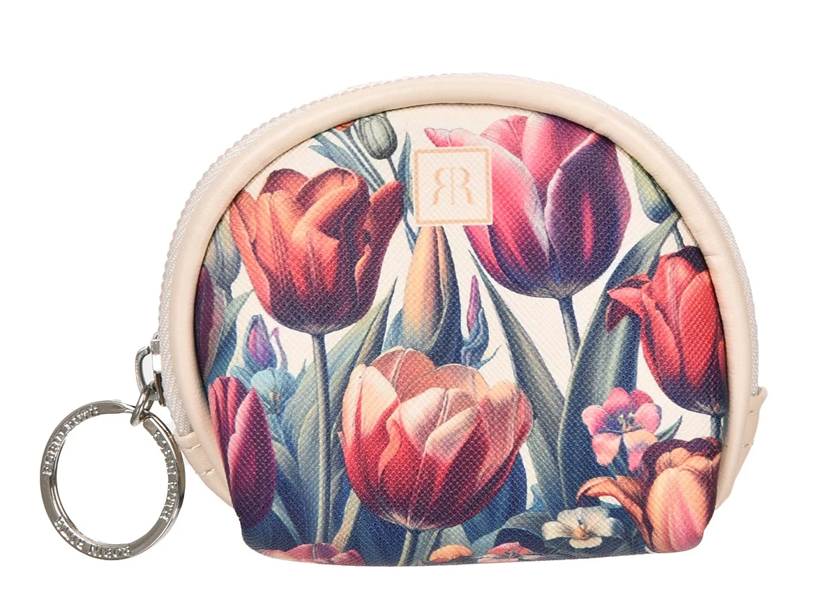 Wallet with tulips - beige Half round Robin Ruth Wallet. Dimensions 9 x 8 x 3.5 CM Closable with zipper (Large Ring)