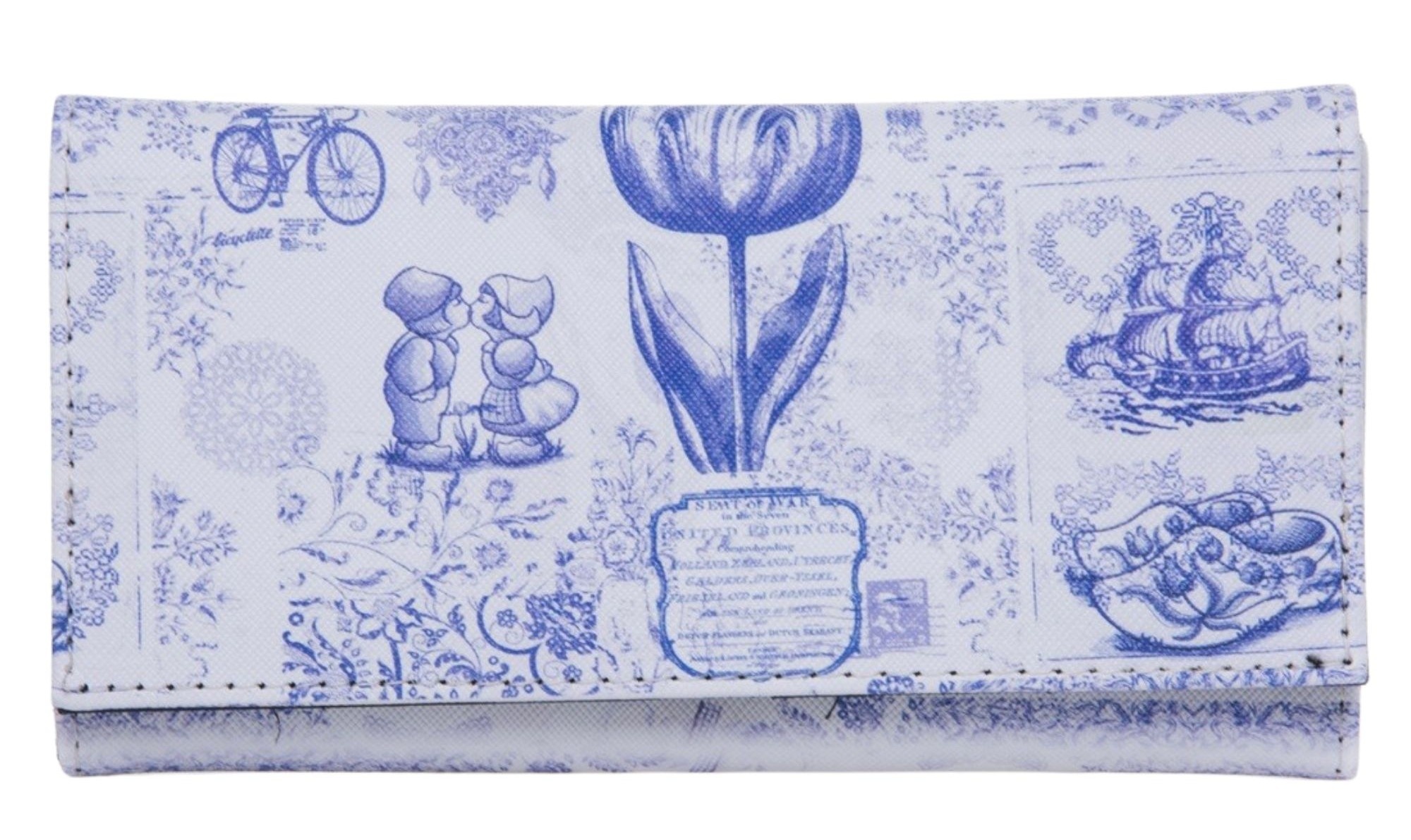 Wallet - Ladies - Delft Blue Layout: 2 Large main compartments In between a small compartment (with zipper) for change. Both main compartments have 2 medium-sized compartments on both sides and 4 small compartments for enough cards and loyalty cards - sav