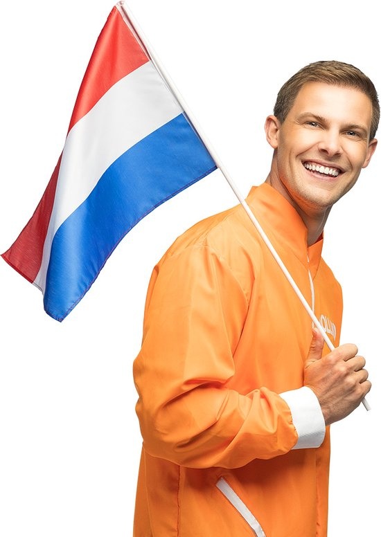 Are you looking for the perfect waving flag for the Dutch national team or King's Day? This large flag (45cm wide) with the Dutch flag is the ultimate eye-catcher for every fan. Mounted on a sturdy pole, lightweight, and ideal for waving at every goal!