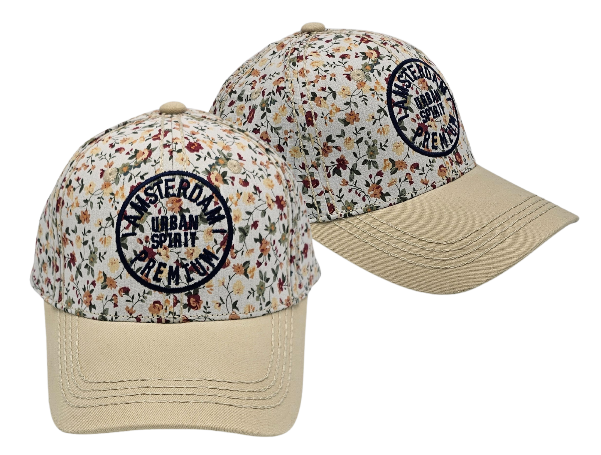 Beautiful ladies cap Amsterdam from the brand: Robin Ruth.Floral motif on beige cap.