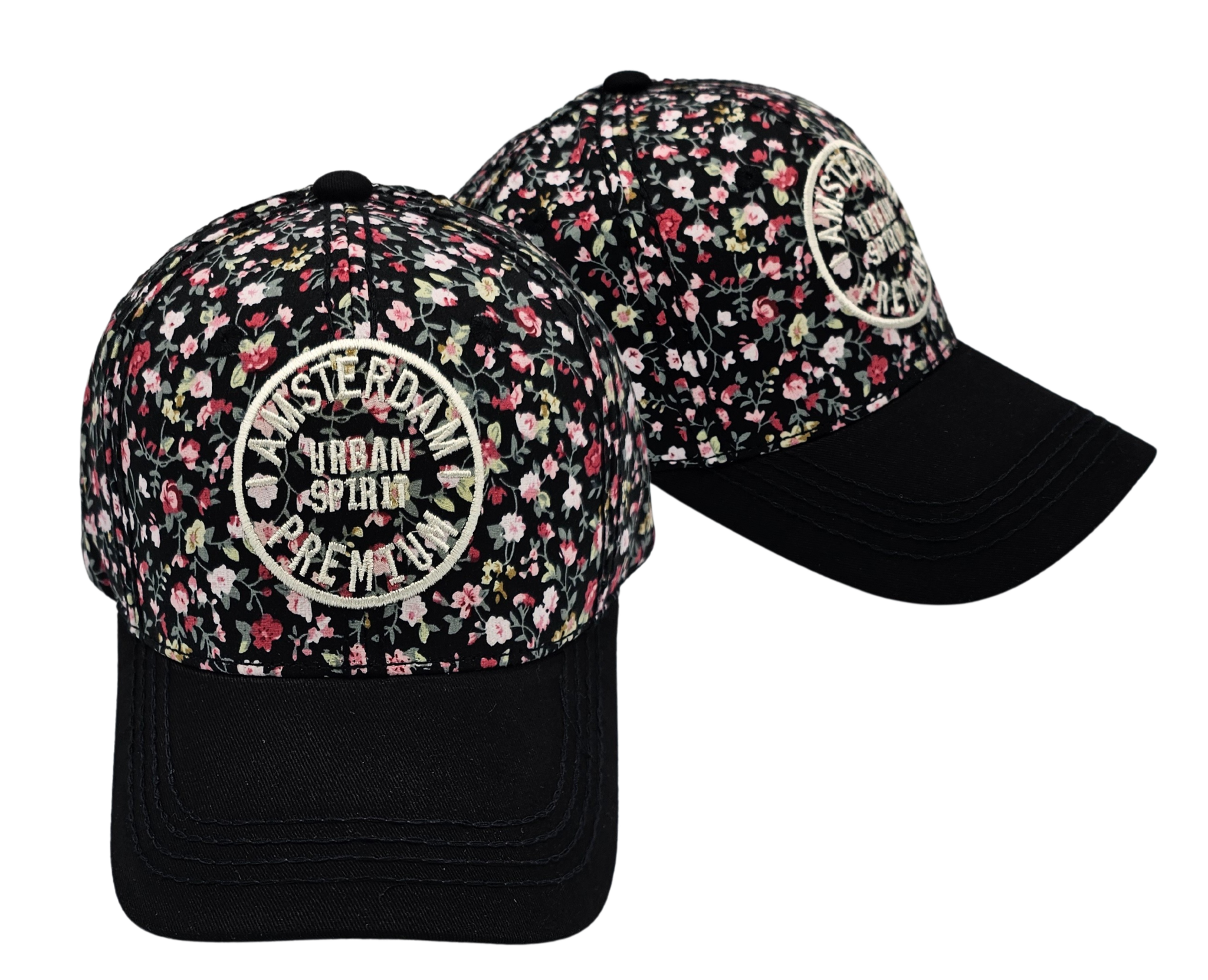 Beautiful ladies cap Amsterdam from the brand: Robin Ruth.Floral motif on blue cap.