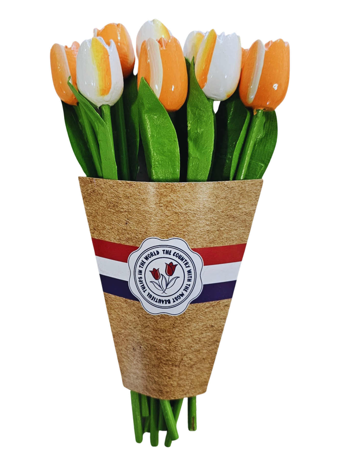 Bouquet of 9 wooden tulips in orange-white and white-orange color mix