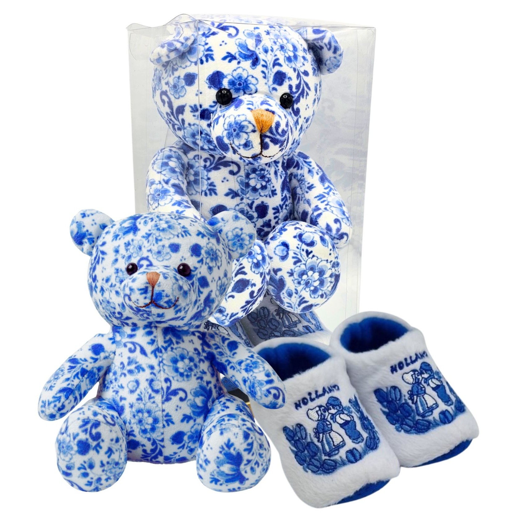 Baby-geschenk-set Beer Delfts blauw en babyslofjes