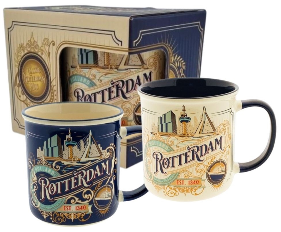 Fraaie Vintage-Rotterdam mokken in geschenkdoos.