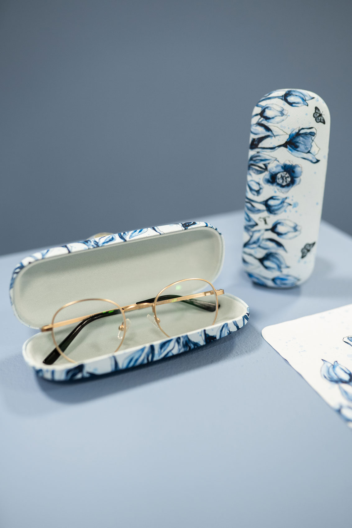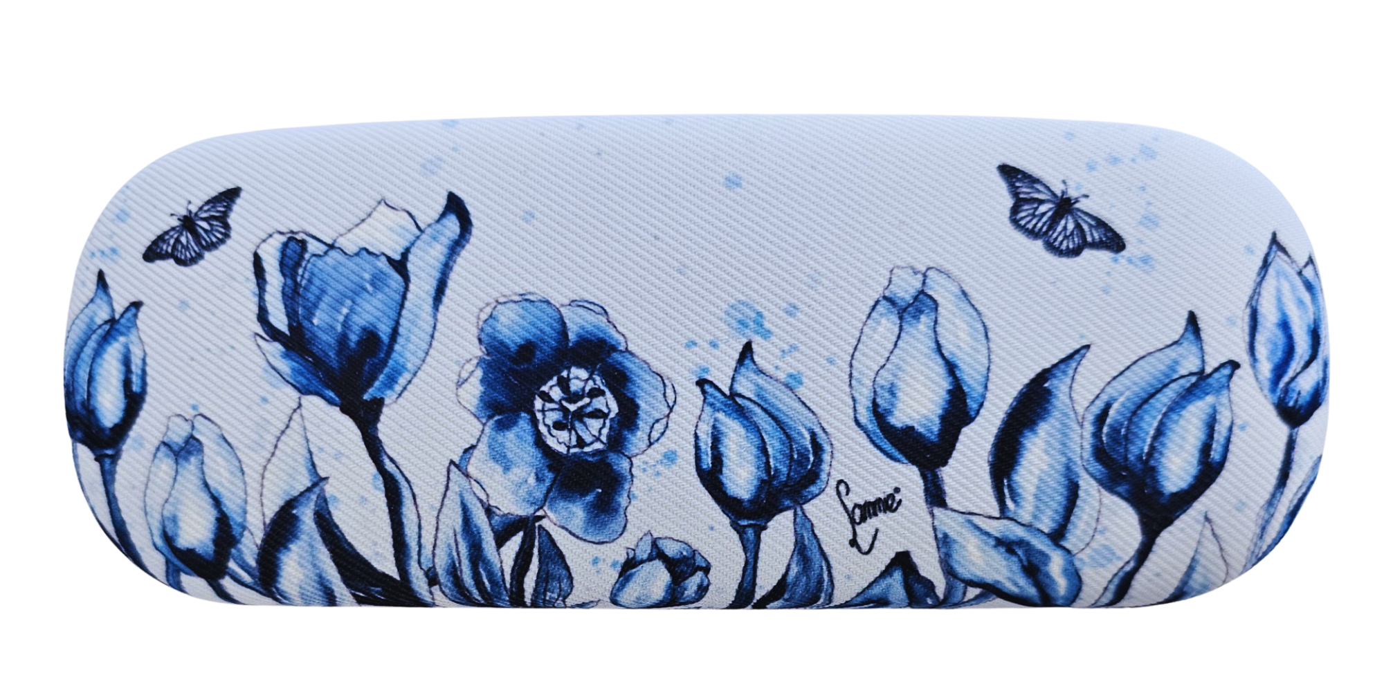 Stijlvolle brillenkoker met mooie "blauwe" print van Hollandse tulpen