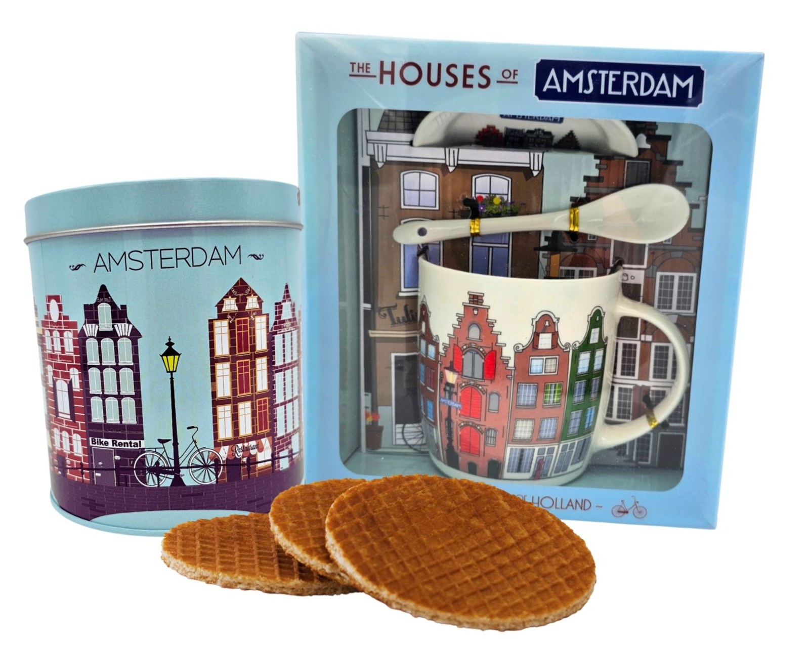 Samen in een bundel verpakt met bijpassend stroopwafelblik