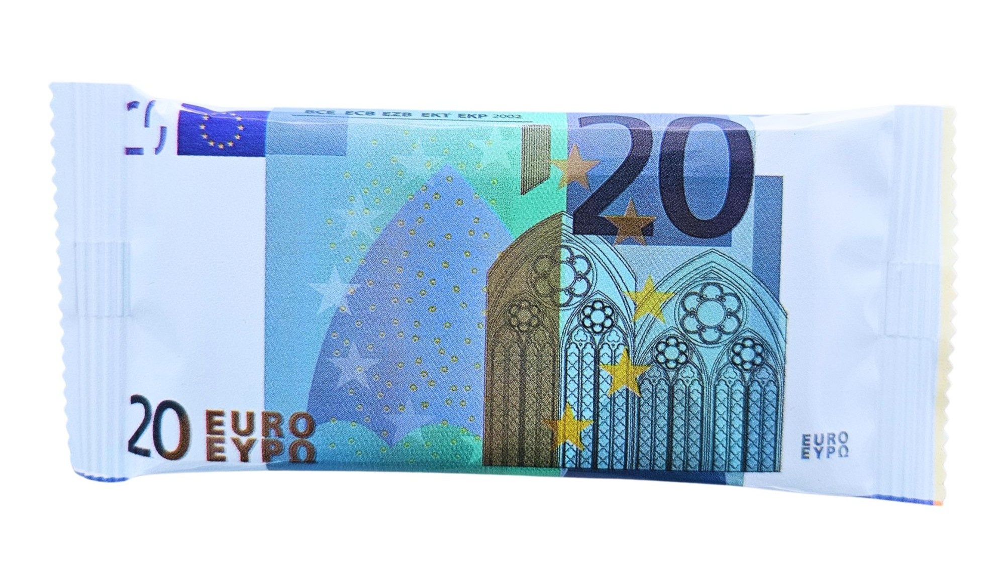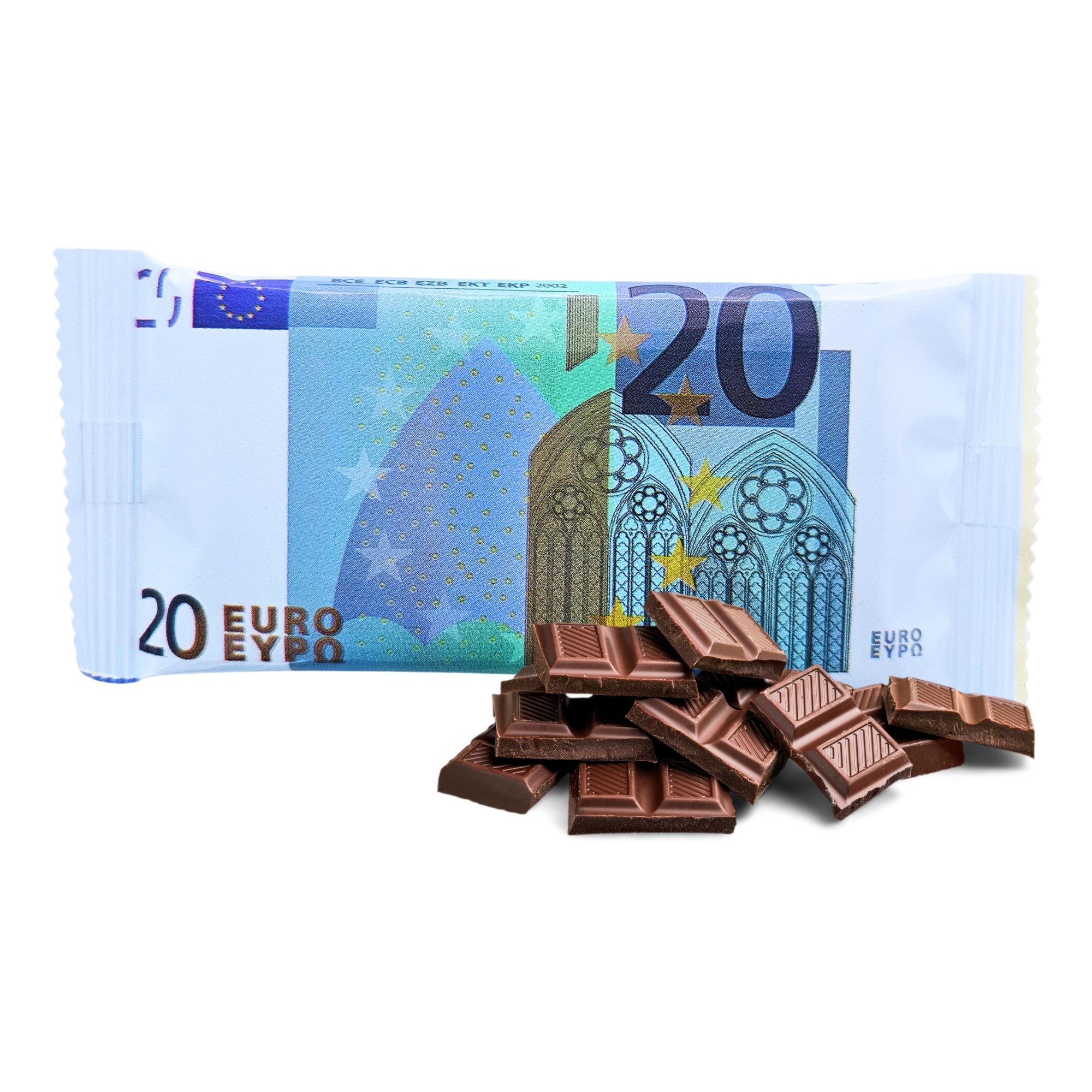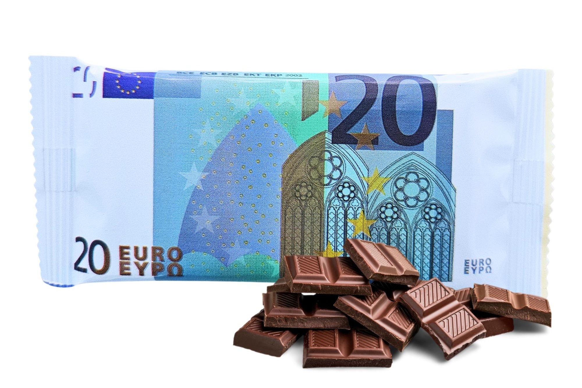 Een chocolade tablet in de vorm van een eurobiljet