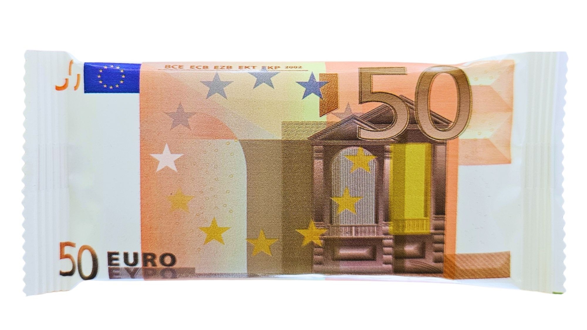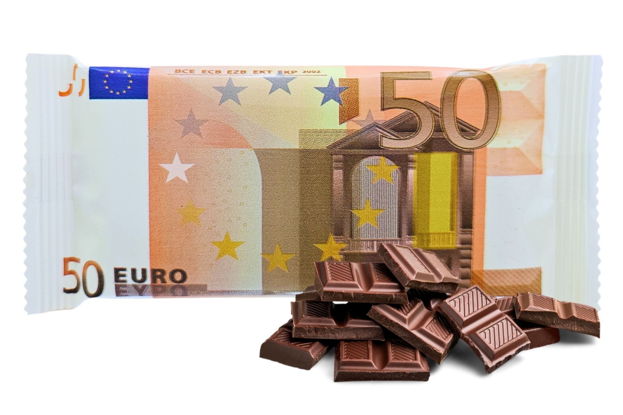 Een chocolade tablet in de vorm van een eurobiljet