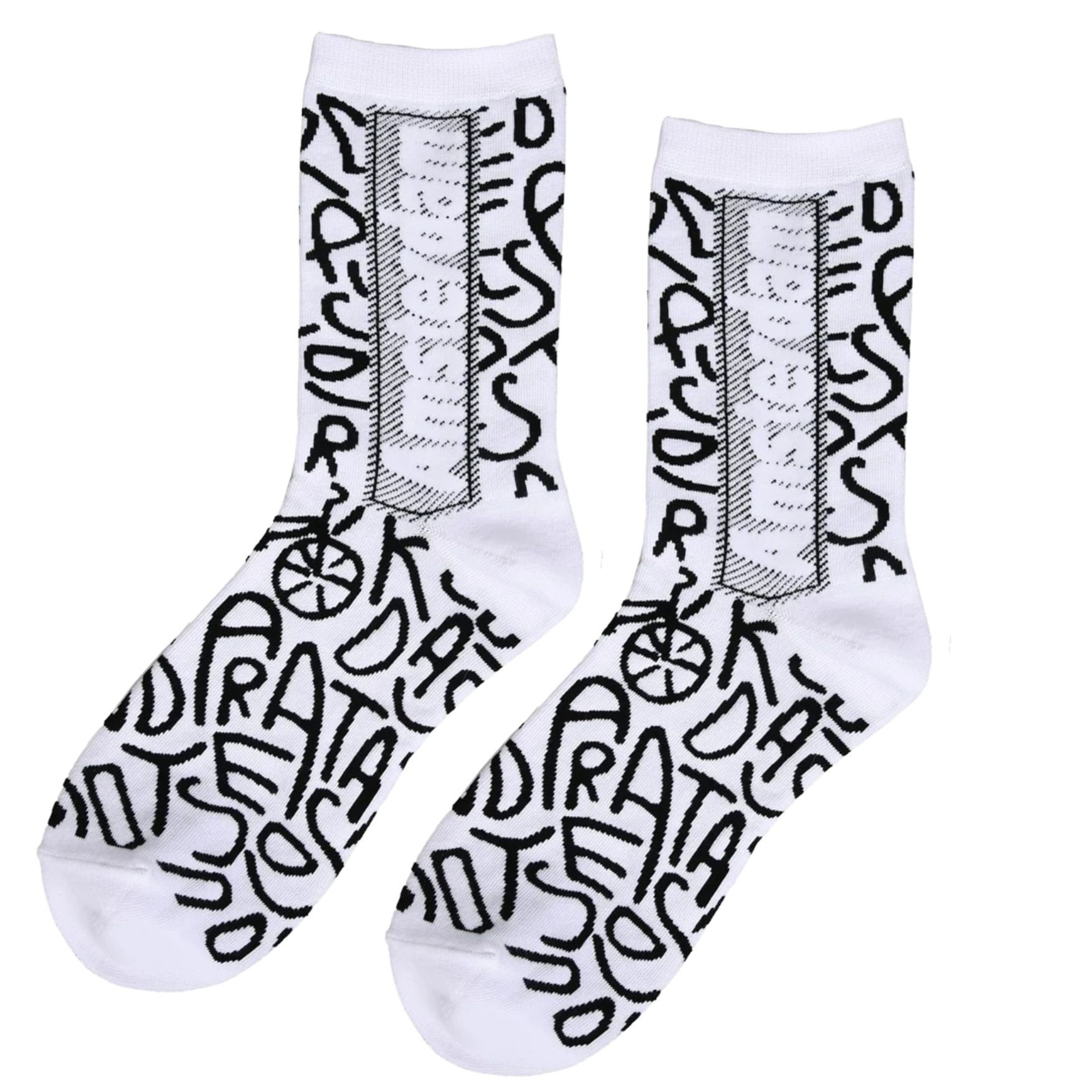 Witte sokken met een verticale baan met de tekst Amsterdam