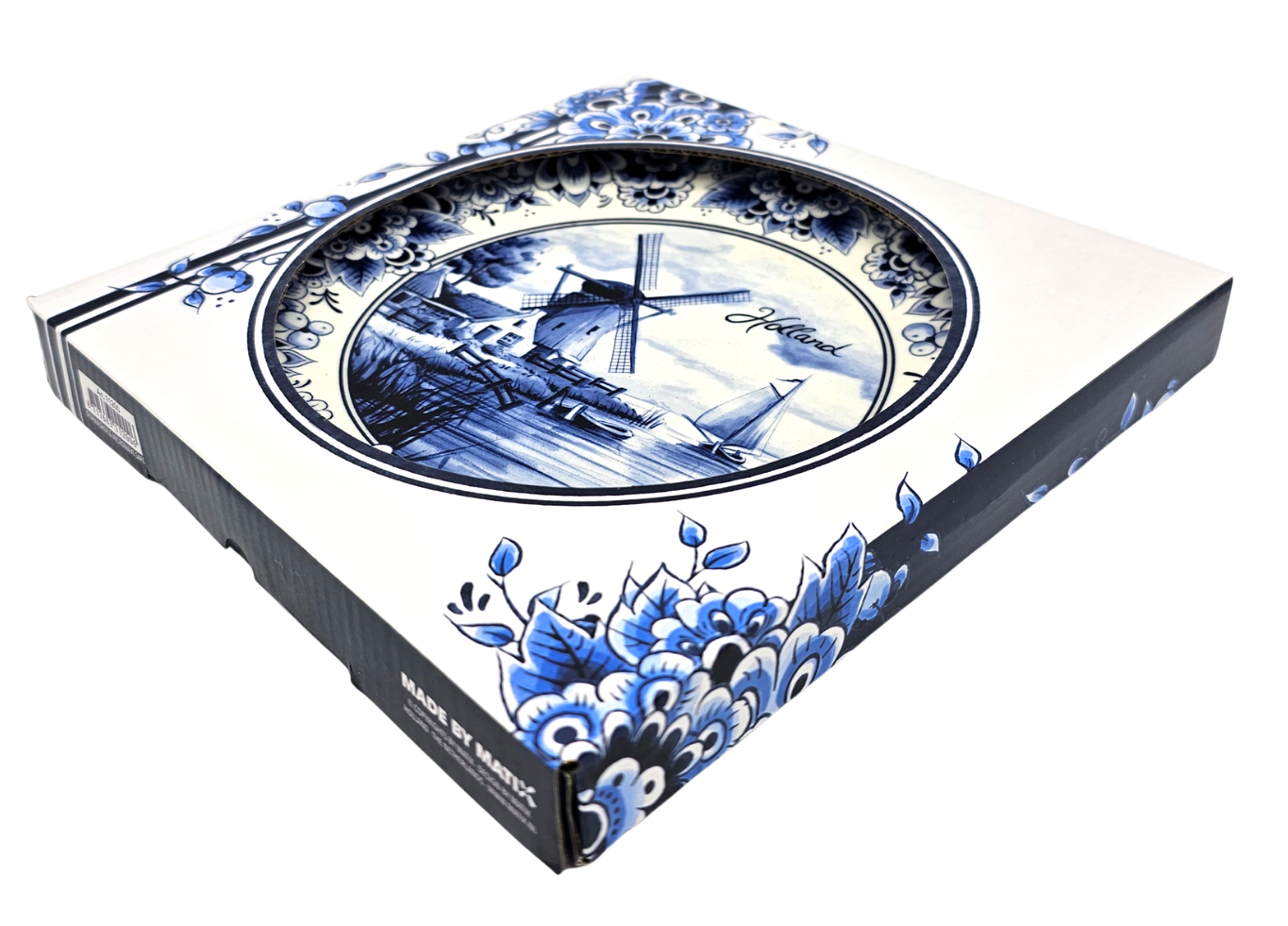 Een prachtig Delfts Blauw bord dat de charme van Holland perfect weergeeft.