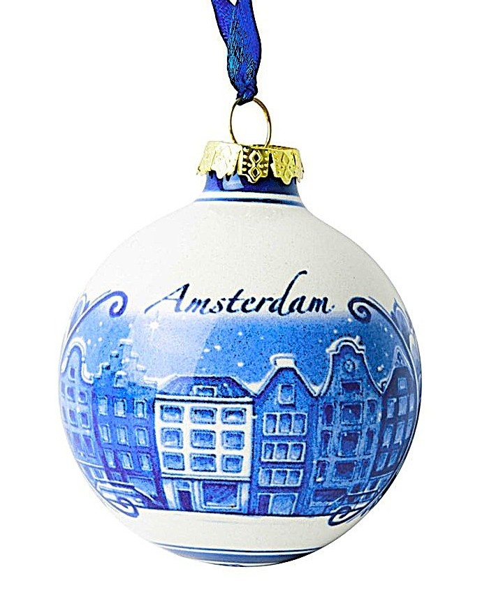 Delfts blauw gedecoreerde kerstbal 7cm - Amsterdam
