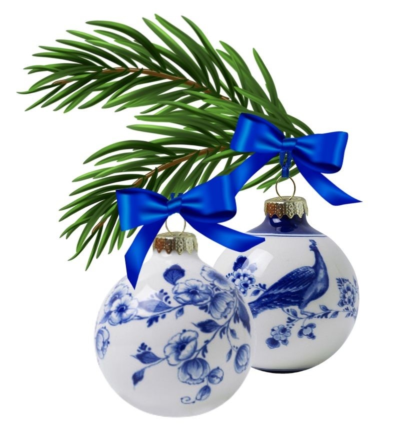 Delfts blauw kerstdecoraties en ballen voor in de kerstboom.