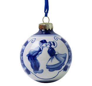 Delfts blauw kerstdecoraties en ballen voor in de kerstboom.