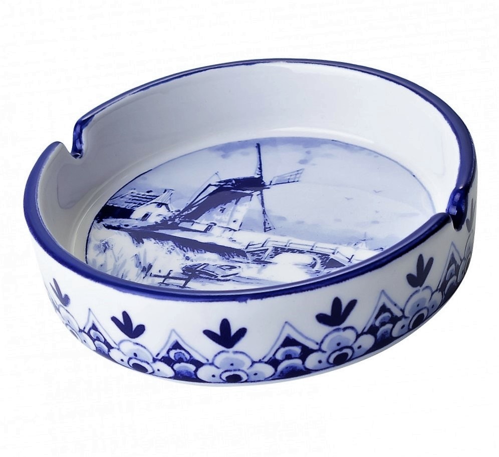 Degelijke asbak met een afbeelding van een Hollandse molen.