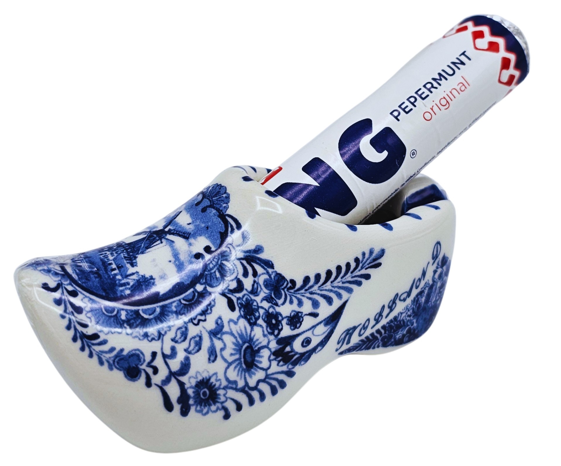 Keramieken Delfts Blauwe Klomp met KING Pepermunt – 10 cm