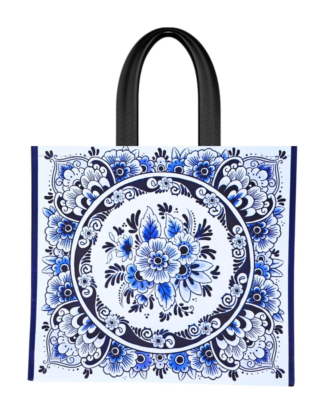 Delfts blauwe Shopper met stijlvolle bloemdecoratie