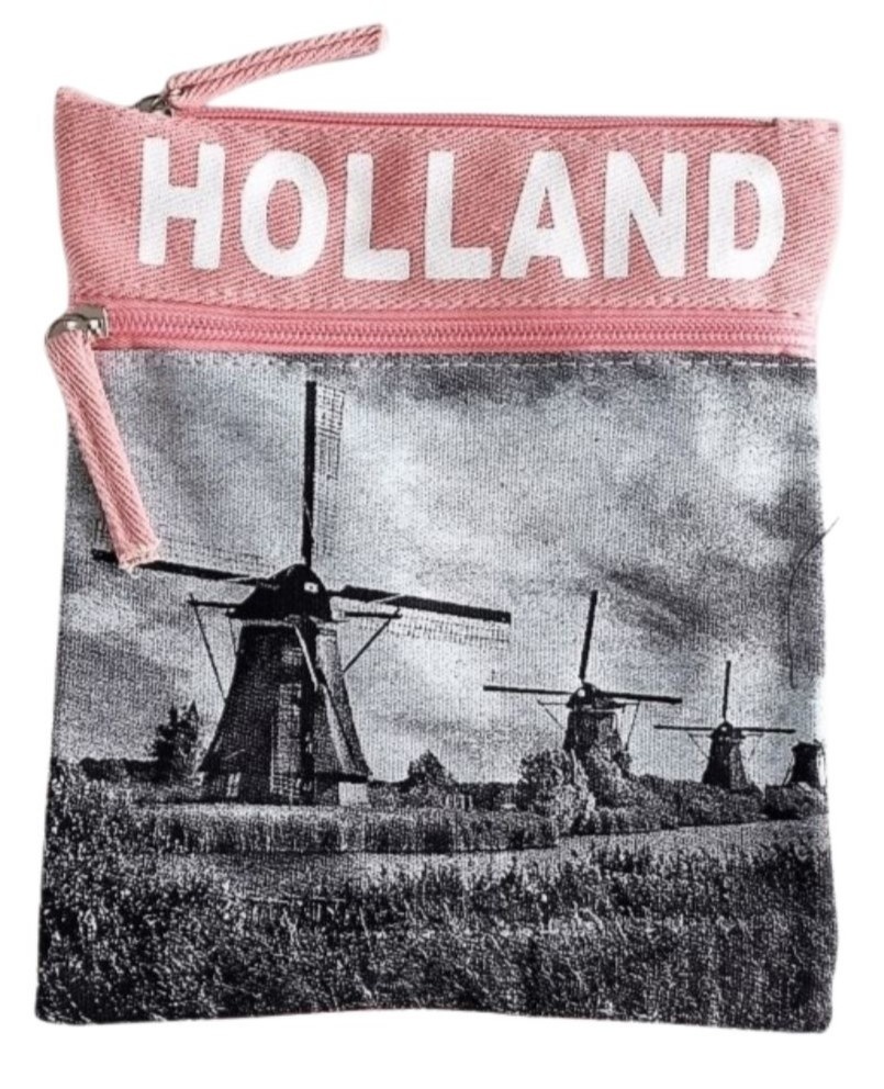 Denim Nektas - Paspoorttas -Holland molens - Roze
