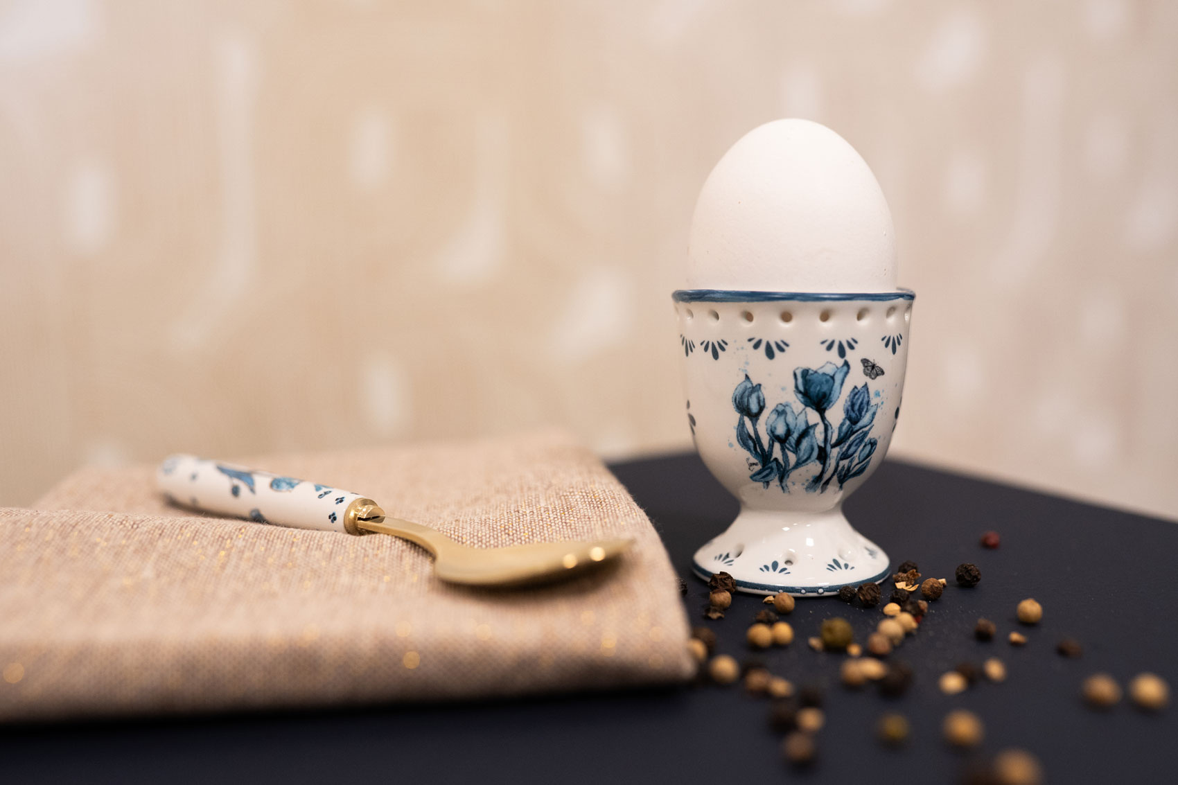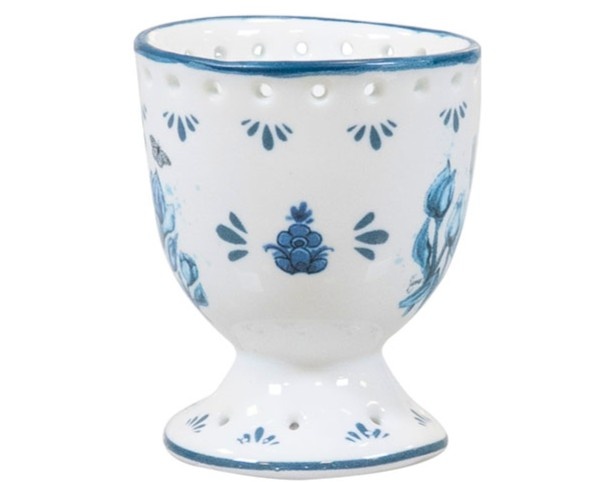 • Typisch Hollands Eierdop wit met blauwe tulpen