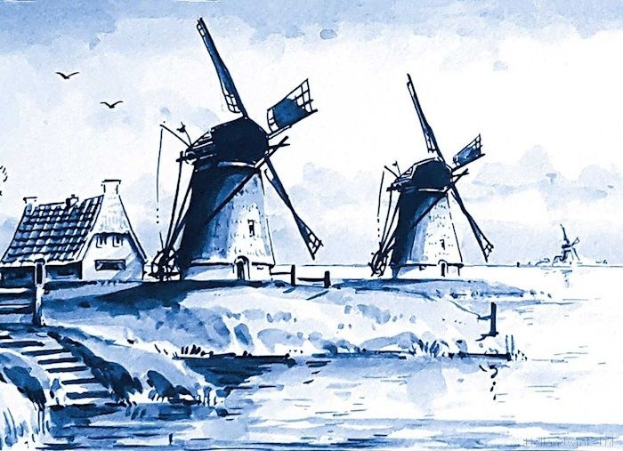 Enkele kaart - Delfts blauw - Klassiek met molenlandschap