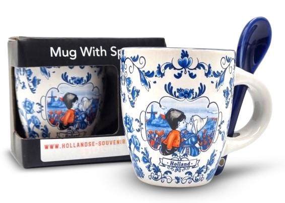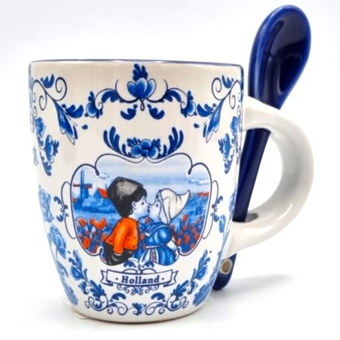 Wit-Rode mok met lepel gedecoreerd met Holland kuspaar