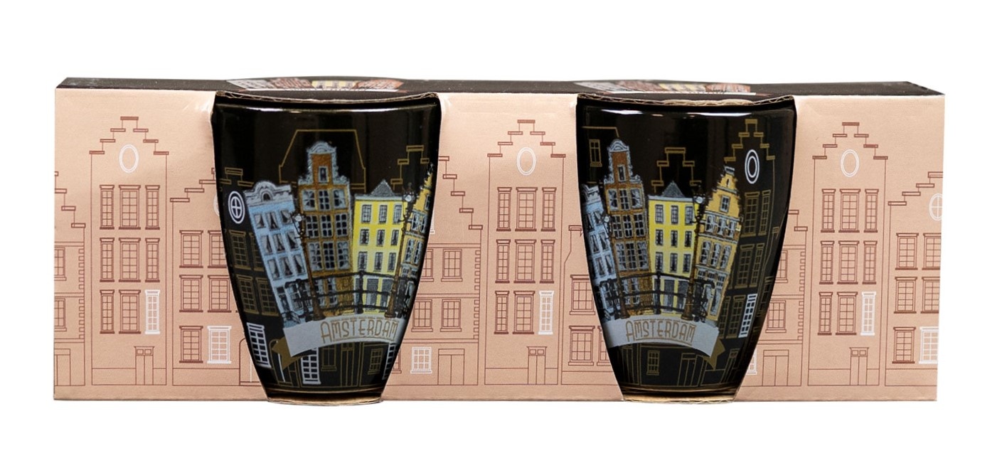Espressomokjes - Geschenkset 2 bekers gevelhuisjes Amsterdam