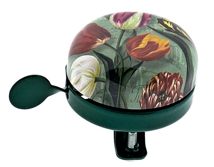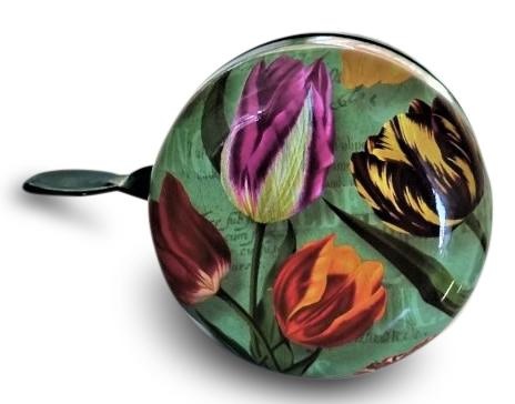 Typisch Hollandse fietsbel met waanzinnig mooi print van rode botanische tulpen.