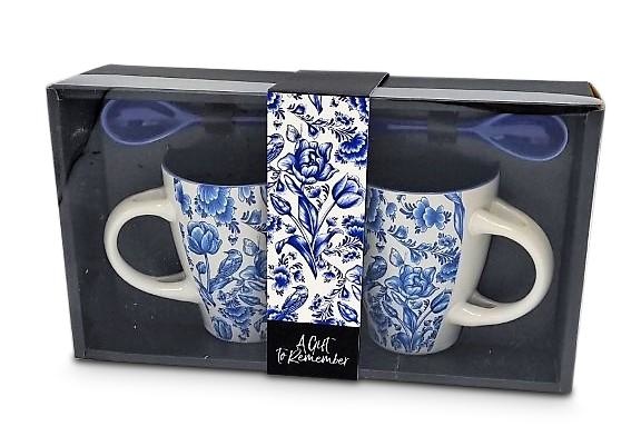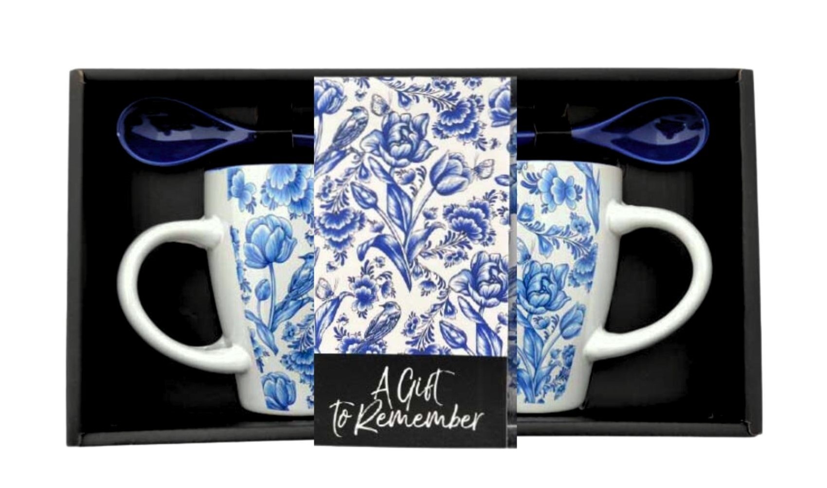 Geschenkdoos Mokken met lepel - Tulpen - Delfts blauw