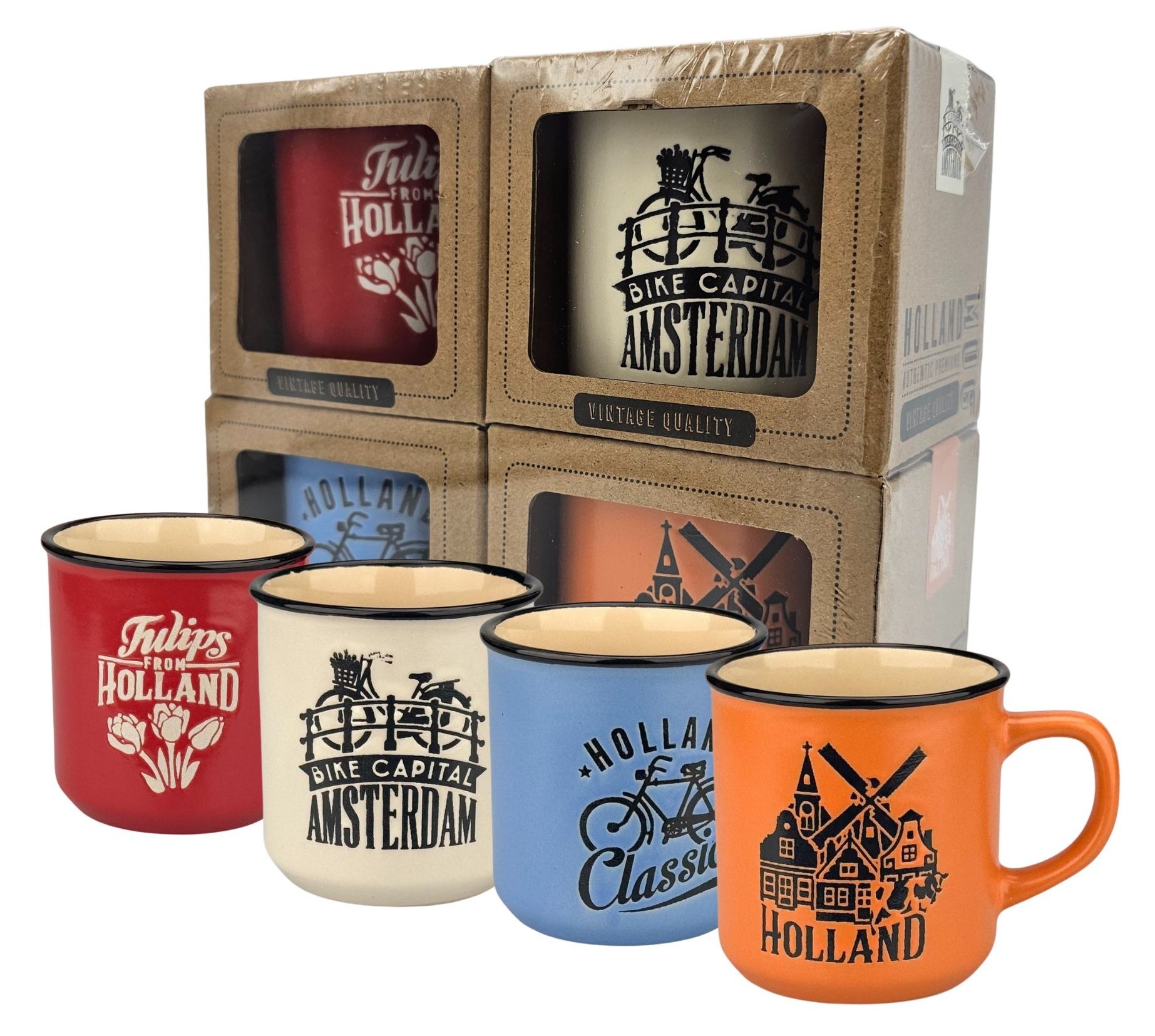 • Typisch Hollands Voordeelset 4 kleine koffiebekers - Rood wit blauw en oranje.