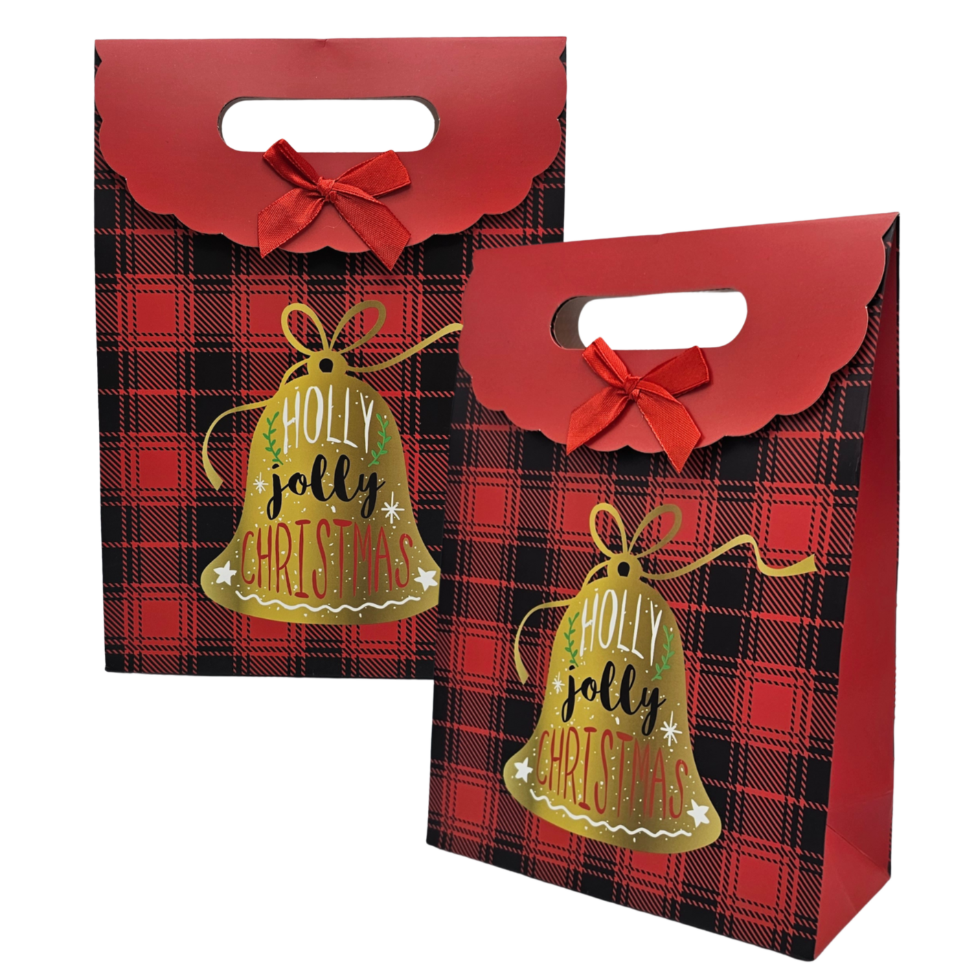 Geschenktas van karton - Kerst - Rood met gouden kerstbel