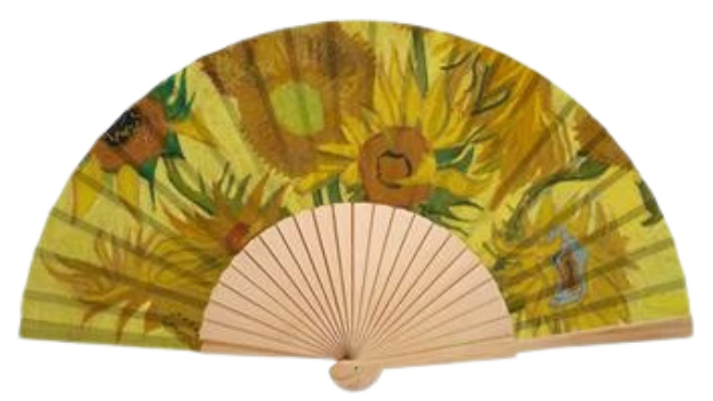 Stijlvolle handventilator met bedrukte stof - Zonnebloemen van Vincent van Gogh