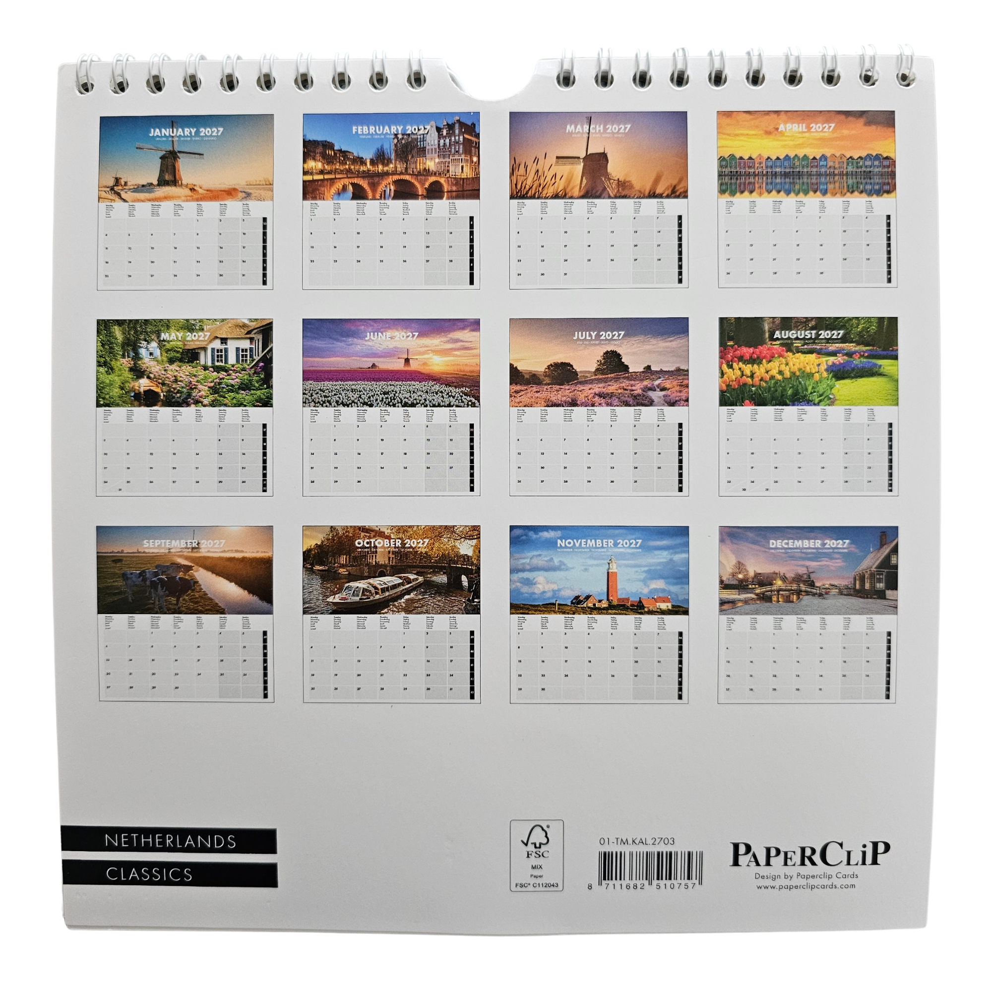 Beleef de mooiste plekjes met de Wandkalender 2027 Holland (20x20 cm). Met foto's van Amsterdam, Kinderdijk, Keukenhof en tulpen. Stevige ringband & ophangoog. GRATIS verpakt in Typisch Hollands cadeaupapier! Hét perfecte Hollandse geschenk.