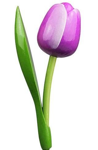 Deze houten tulp is handgeschilderd en heeft een lengte van 34 centimeter.