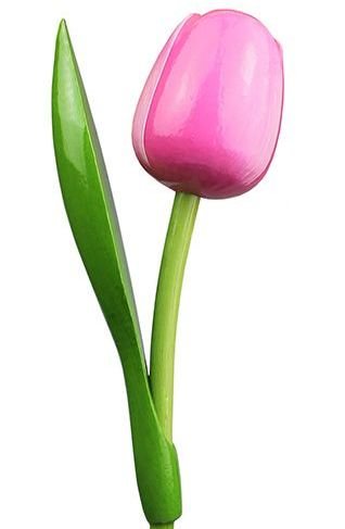 Houten Tulp - Roze Deze houten tulp is handgeschilderd en heeft een lengte van 34 centimeter. Door de ambacht en gebruik van olieverf is de tulp bijna net echt! •Houten tulpen op steel staan bij Typisch Holland het gehele jaar op voorraad.