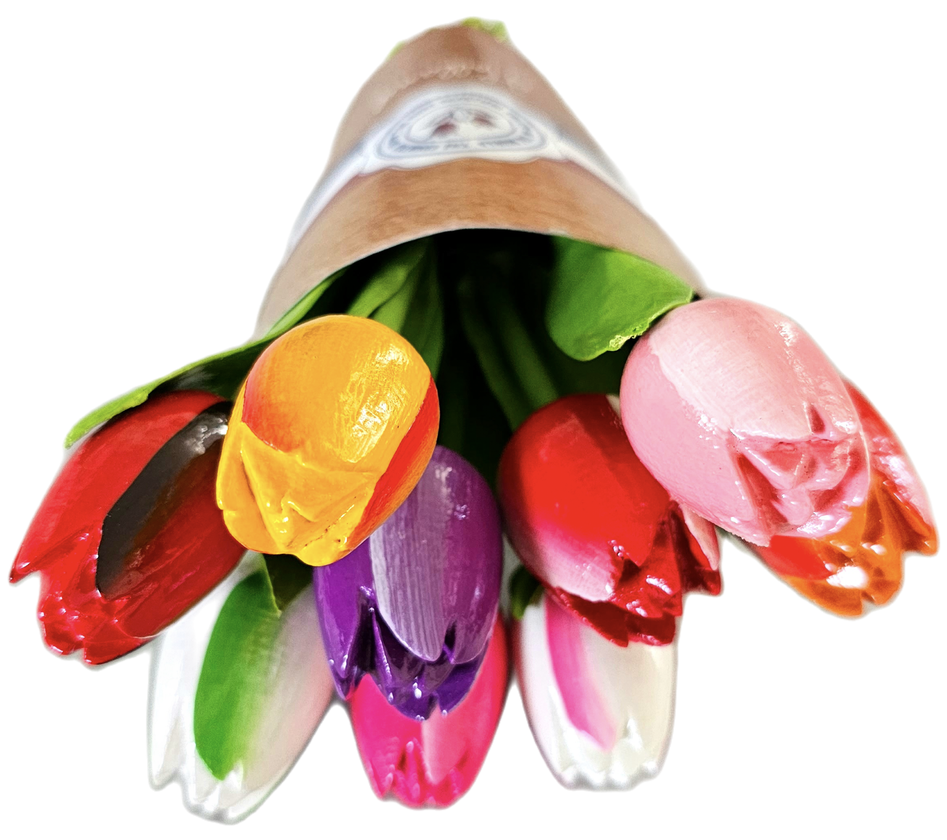 Deze houten tulpen hebben een lengte van 20 centimeter.