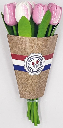 Boeketje van 9 houten tulpen in Roze-wit en Wit-roze kleuren