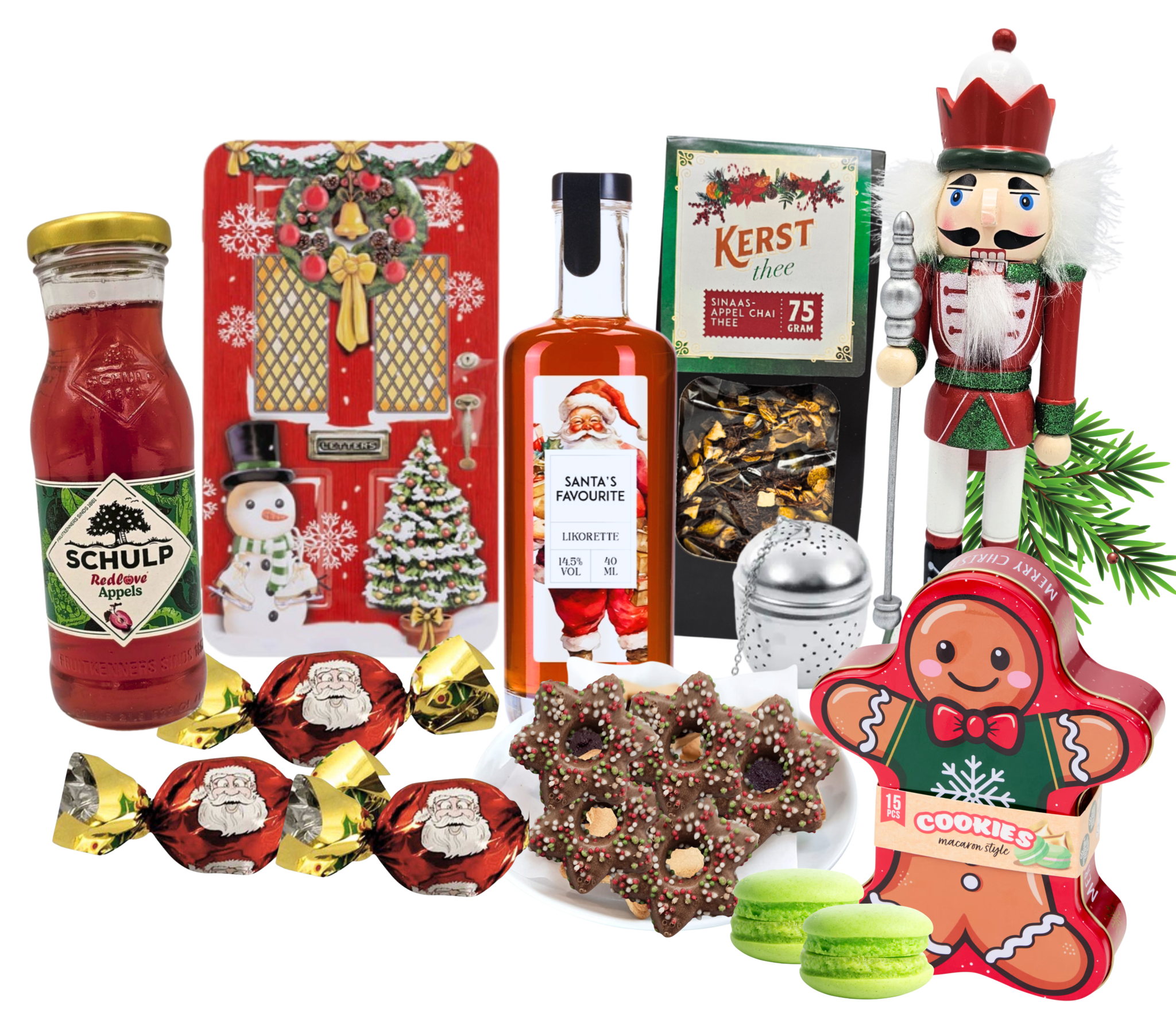 Kerstpakket Rood-Groen, is een perfect geschenk om uw buitenlandse vrienden, familie en collega's mee te verrassen tijdens de feestdagen. De stijlvolle doos bevat eem notenkaker en 2 bewaarblik, die dienen als een blijvende herinnering.